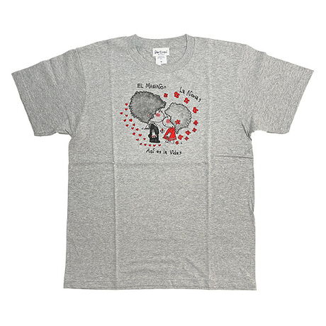 水森亜土 マリンカップル 半袖Tシャツ(M) グレー アパレル