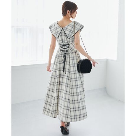 付属のチョーカーが映えるようにデコルテ周りはすっきりとしたデザインに。華奢見えも叶えてくれます◎