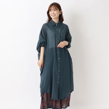 清涼感があり、夏のお出かけにおすすめのロングシャツです。