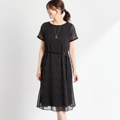 【WEB先行カラーあり/マシンウォッシュ可/ナローベルト付き】オフボディツイードチェックワンピース