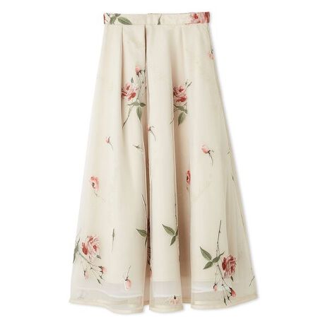チュール生地に白い糸で総刺繍を入れ、さらにその上にプリントを重ねる事で奥行のあるデザインに落とし込んでいます。