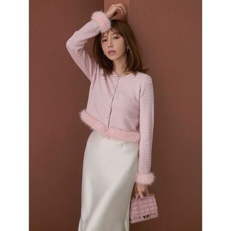 カシミア混ファートリムカーディガン