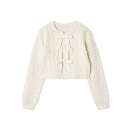フロントに並んだリボンモチーフが特徴的なニットプルオーバー。
