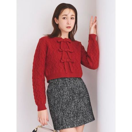 リボンモチーフケーブルニットプルオーバー