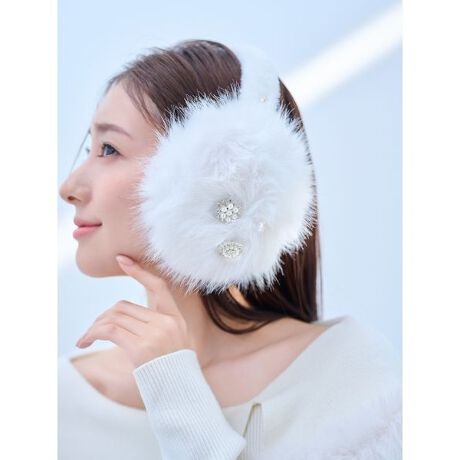 ビジュー付きフェイクファーイヤマフ