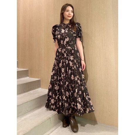 程よいプリーツ分量と動くたびに映える袖のフリルが素敵なプリントワンピースです。