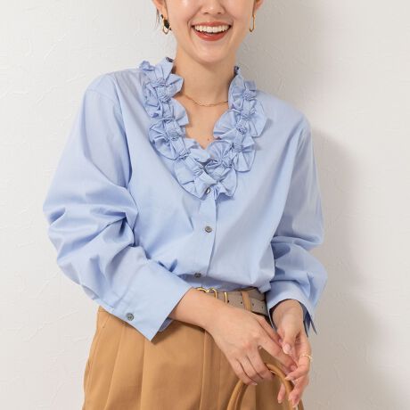 ・フラワーモチーフのようなネックデザインがポイントのブラウス