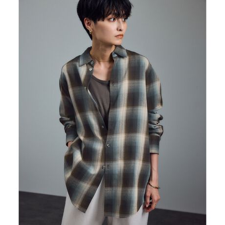 ゆったりしたシルエットが可愛いオンブレチェックのシャツは今年らしいトレンド感があり、