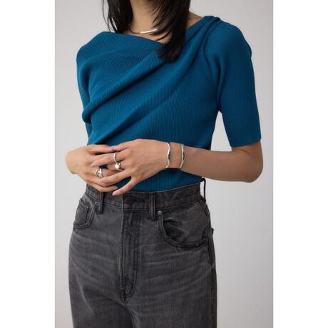 ■ドレープデザイン5分袖リブニット■ポイントレーヨン糸にポリエステル糸を織り交ぜ、ドライタッチに編みたてたリブニット。■ディテール前身頃にアシンメトリーなドレープを入れたデザインです。体のラインを拾いやすいイメージのリブニットですが、ドレープを入れることで適度に体型カバーもしてくれます。デコルテをキレイに見せてくれる襟ぐりのラインもポイントです。■スタイリングデニム合わせでカジュアルに、スカート合わせで女性らしく。ボトムを選ばず、アウターインにも重宝する一枚です。■生地透け感:なし裏 地:なし伸縮性:あり光沢感:なし[注意事項]※画像の商品はサンプルです。実際の商品と仕様、加工が若干異なる場合があります。※画像の商品は光の照射や角度、お使いのモニター環境により、実物と色味が異なる場合がございます。※着用、お取り扱いの際は、アテンションタグをご確認ください。