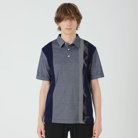 【フロントをストライプ状に切り替えたデザインポロシャツ】