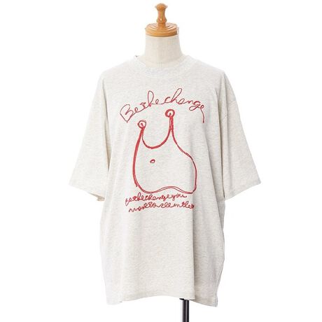 フロントには「スライム」をモチーフにしたキャラクターと『世界を変えるのは自分の一歩から』を意味する英文がコード刺繍で施されています。
