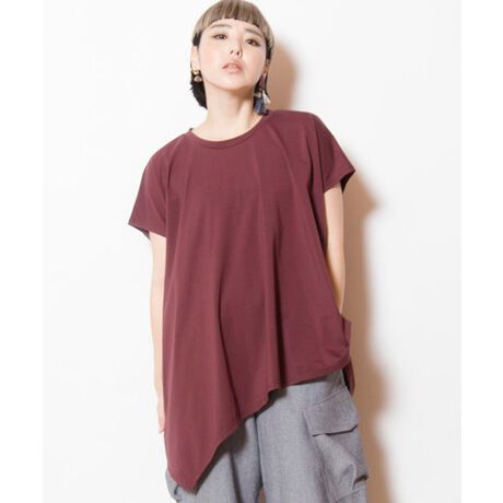 [型番:700090-285T]モードなアシメフレアーなシルエットで、カジュアルさを払拭。夏のムードから一転、深みのあるアースカラーで秋へとシフト。===========================透け感: 僅かにあり(WHITE)伸縮性: あり光沢感: なし裏地: なし素材について: 伸びが良く、表面にツヤと僅かなハリのあるカットソー地===========================