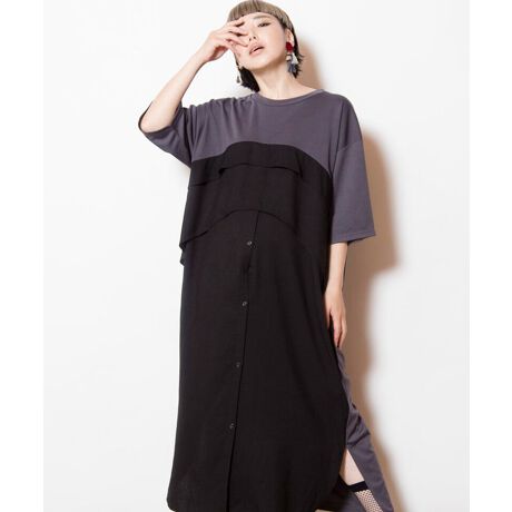 ゆるりとしたシルエットに抑揚をつける、シャツレイヤード風ワンピース。