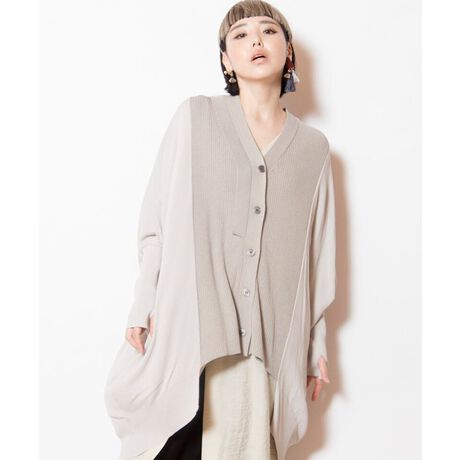 ワイドシルエットのカーディガンは、表情豊かで変則的な襟元がポイント。