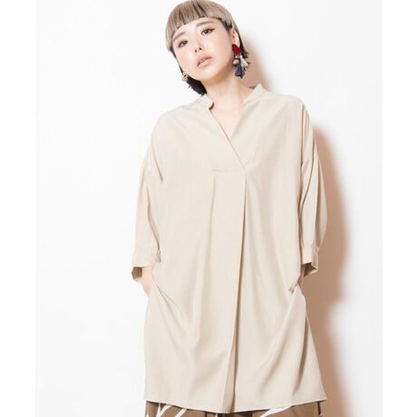 スッキリとしたスキッパー風のフロントに、アンティーク風なレースが女性らしさを引き立てるブラウス。
