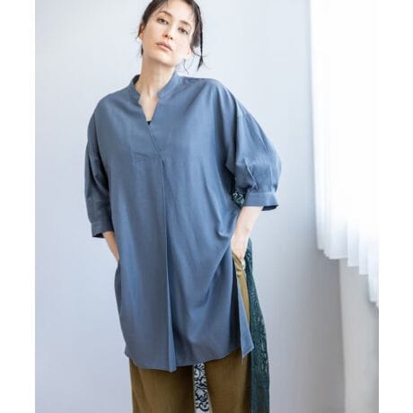 素材について: 表面にマットな光沢感のある、上品で柔らかなブラウス地