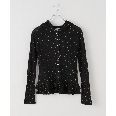 CRANK/クランク DOT FRILL SHEER HOOD CARDIGAN