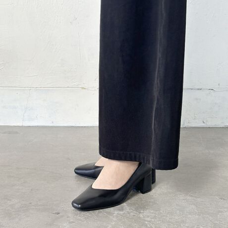 トレンドのスクエアカットにアシメトリーカットがエッジの効いたプレーンパンプス。