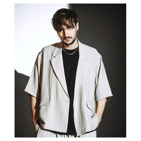 同素材展開の「サイドタックドローストリングパンツ」とのセットアップスタイルで、完成度の高いスタイリングが可能です。