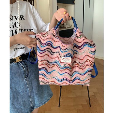 カラフルな糸のデザインがかわいい!2WAYの使い方ができるトートバッグです。