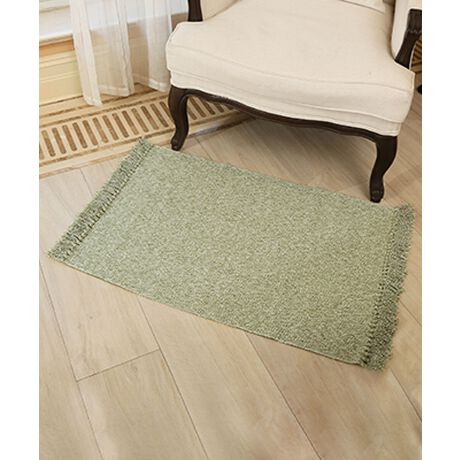 無地のシンプルなデザインに、両端のフリンジがアクセントを加え、玄関やベッドサイド、洗面所などどんな空間にも馴染みます。