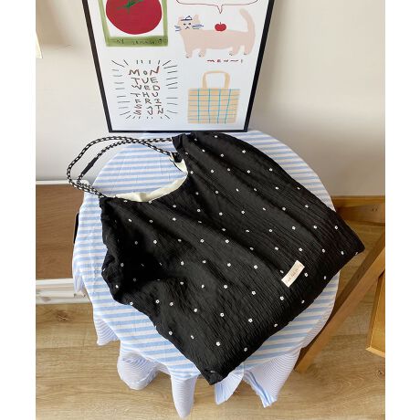 爽やかな凹凸のある生地に小花柄が可愛い巾着ライクなトートバッグ