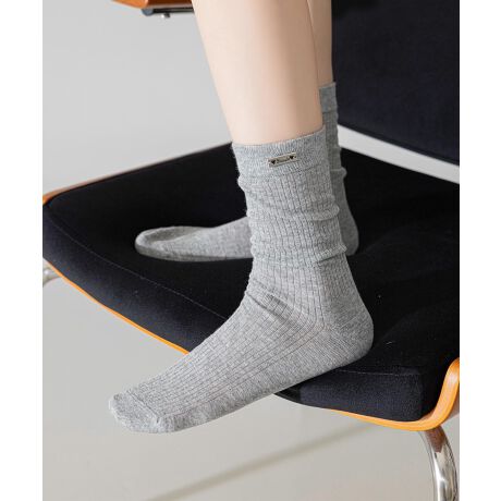 ミニマルだけどしっかりおしゃれなメタルロゴタグ付きソックス。