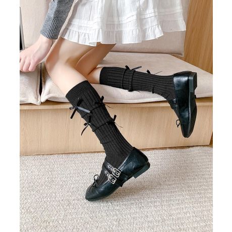 サイドに並んだ細リボンが目を引く、トレンド感満載のソックス。