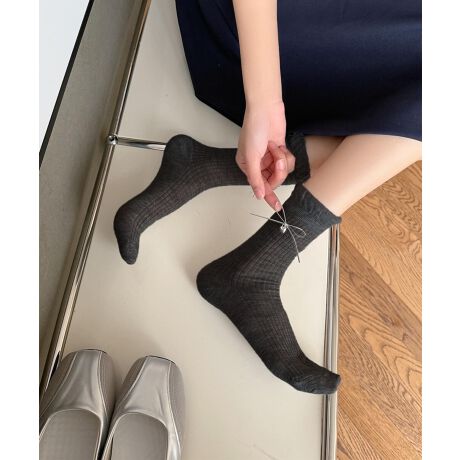 足元にアクセントを加えてくれるプチリボン&さりげないチャーム付き。柔らか素材で伸びも良く、素肌に優しくフィット。