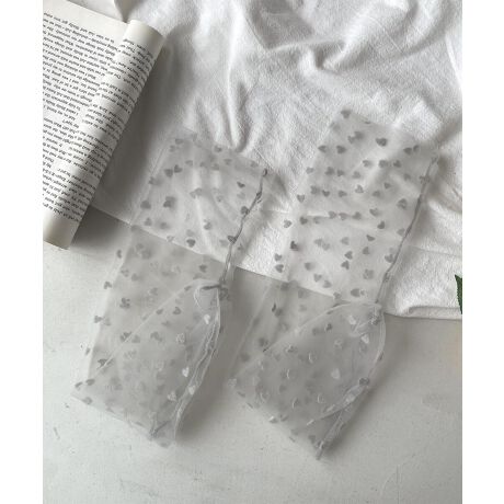 ふわっと軽やかなチュールに、立体感のあるハート柄を散りばめたフロッキー加工のガーリーソックス。