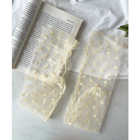 ふわっと軽やかなチュールに、立体感のあるハート柄を散りばめたフロッキー加工のガーリーソックス。