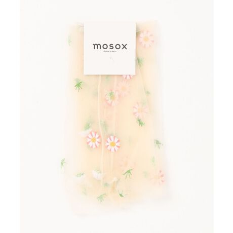 ガーリーでロマンティックなムード漂う、シアー素材のマーガレット刺繍ソックス。