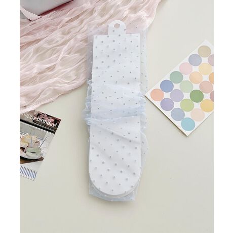ドットチュールと繊細なレースチュールをドッキングした、上品&甘めなデザインソックス。