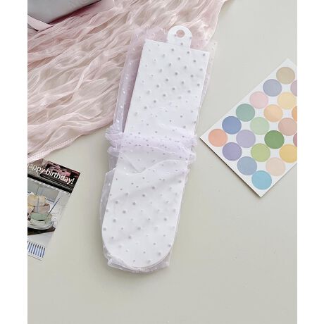 ドットチュールと繊細なレースチュールをドッキングした、上品&甘めなデザインソックス。