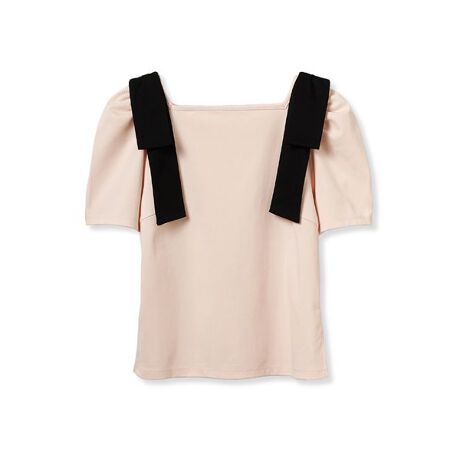 肩にリボンをあしらった1枚で気映えるカットトップスです。リボンはすっきりとした棒状のデザインで、甘さを抑えた印象に仕上げています。シンプルながらもコーディネートしやすく、すっきりとしたウエストラインが美しいシルエットを演出。アウトでもインでもスタイルが決まり、さまざまな着こなしが楽しめる一枚です。ひじ上のパフスリーブは華奢見えするシルエットにこだわりました。程よいワンポイントデザインが、大人の女性にもぴったりなアイテムです。全色、リボンは黒を付けています。