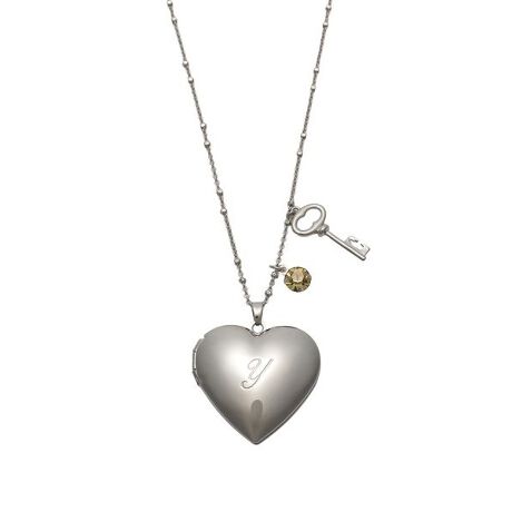 ぷっくりとしたハート型のロケットに写真を入れられる特別感たっぷりのデザイン。イニシャルを刻んだオープンハートに、鍵モチーフとガラスストーンが華やかさを添えます。カラーごとに異なるイニシャルが込められており、大切な人へのギフトにもおすすめです。