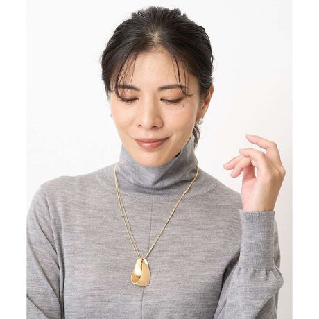 トップのメタルパーツは結び目のような柔らかなデザインで、付けるだけできれいめな印象になるネックレスです 細い2連のチェーンがエレガントな雰囲気を漂わせます。チェーンを外してお手持ちのコードを通してアレンジすることもできる汎用性の高いアイテムです。