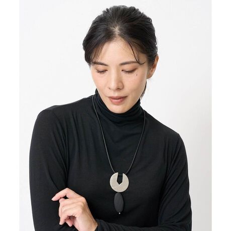 [型番:PG2AB51110]モダンなメタルとカラーパーツを組み合わせたネックレス。とても軽く、丸みのあるコードは肌当たり良いのでストレスフリーな着け心地抜群。いつもの着こなしにプラスすることでモードな印象になります。※アクセサリーパーツ・部品などの金属部分に鉛が含まれている場合があります。小さなお子様が口に入れたり誤って飲み込んだりしないように、使用や保管の際は厳重にご注意ください。