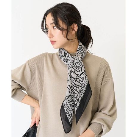 [型番:PG3AB56130]薄手の柔らかいウール素材にGRロゴをプリントした華やかなスカーフ。大判ですが薄手なのでボリュームが出過ぎず細幅に折りたたんでも二つ折りの大判三角スカーフとしてもお楽しみいただけます。