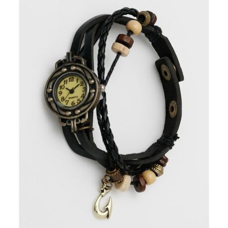 [型番:42CZ5202-2025]幸運の象徴フィッシュフックがついたレザーの腕時計。シンプルなコーディネートのアクセントにもおすすめです。