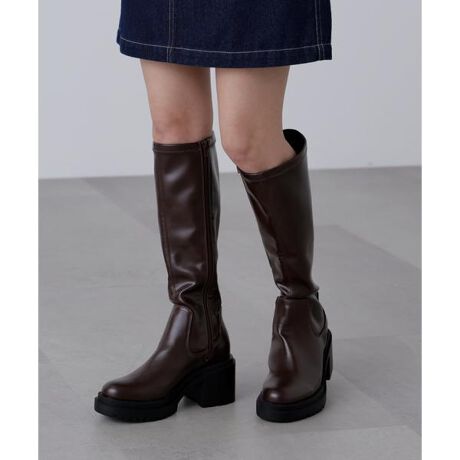 今シーズンも引き続き人気のロング丈トラックブーツ。ストレッチが効いている柔らかな合皮素材で履き心地が良い1足。サイドジップ付きで着脱しやすくなっています。程よい厚みのあるトラックソールを使用、安定感があり歩きやすさもポイントです。※モデルの着用画像の場合、光の当たり具合により、実際の色味と異なって見えることがございます。色味は、商品単体の画像をご参照ください。