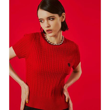 【レッド別注カラー】MARY QUANT/CABLE HALF SLEEVE KNIT
