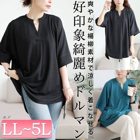 【大きいサイズ】 楊柳胸タックドルマンチュニック 大きいサイズ レディース チュニック ブラウス 夏