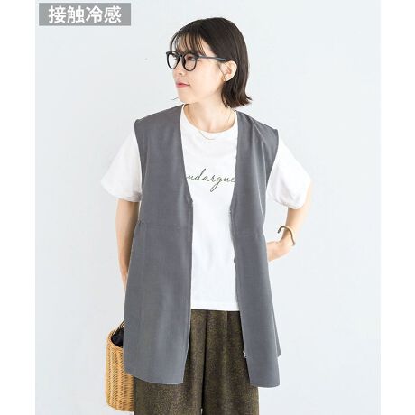 #麻調#ミディ丈#フレア#ジップ#レイヤード#ノースリーブベスト#ウエスト切り替え#体型カバー#重ね着#トレンチ風#涼感素材#夏#ジレ#オフィス