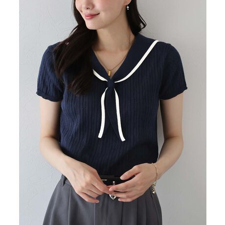 セーラーカラーとボウタイで大人ガーリ―なサマーニット