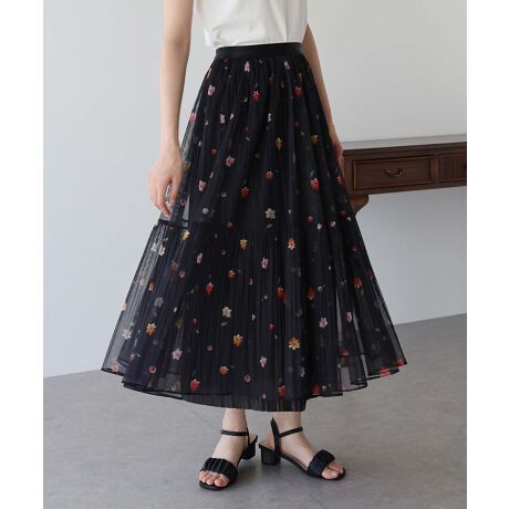 華やかで存在感のあるデザインなので、シンプルなトップスに合わせてバランスの良いコーデに。
