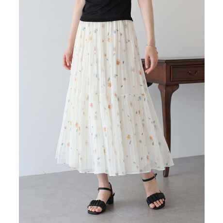 花柄プリントが華やかなチュールプリーツスカート
