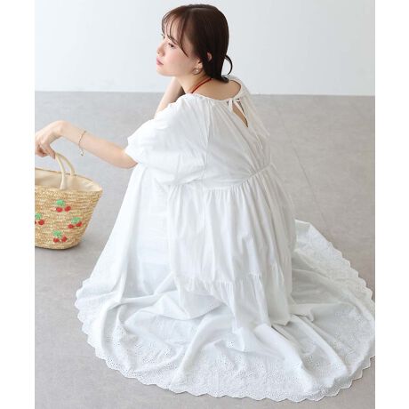 繊細な花柄刺繍が彩るナチュラルフェミニンなコットンワンピース