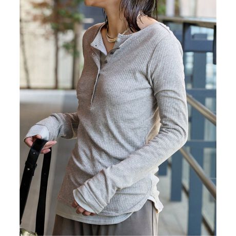 上品な透け感が素敵なテレコヘンリーネックカットソー。