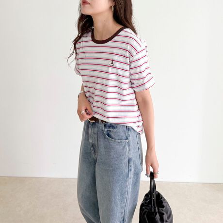 ・エッフェル塔モチーフの刺繍がアクセントになった、大人カジュアルに映える半袖Tシャツ
